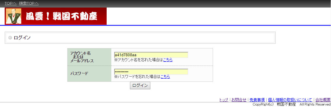 ※サンプルのためログインは出来ません